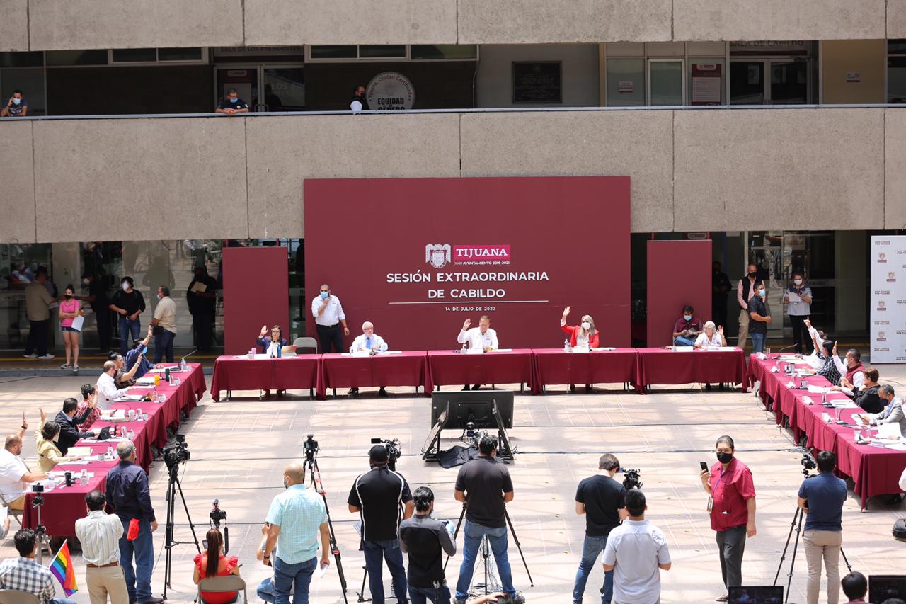 En sesión extraordinaria, el Cabildo de Tijuana turnó a comisiones conjuntas la adición de los artículos 169 Bis y 193 Bis del Bando de Policía y Gobierno, para sancionar a las personas que realicen cualquier acto que ponga en riesgo la vida de la ciudadanía por no respetar la contingencia en los hogares o alerta derivada de la emergencia sanitaria, con multas de 50 a 200 UMA, a fin de evitar la propagación de Covid-19 en la región.