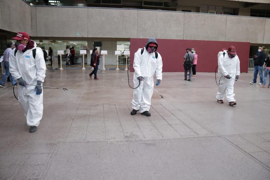 El director de Servicios Públicos Municipales, Enrique Bautista Corona, informó que desde julio las instalaciones de Palacio Municipal son desinfectadas semanalmente, atendiendo los accesos comunes y las dependencias ubicadas en todos los niveles del edificio; además mediante nebulización se desinfectará el edificio el próximo sábado aprovechando que no hay servicio al público.