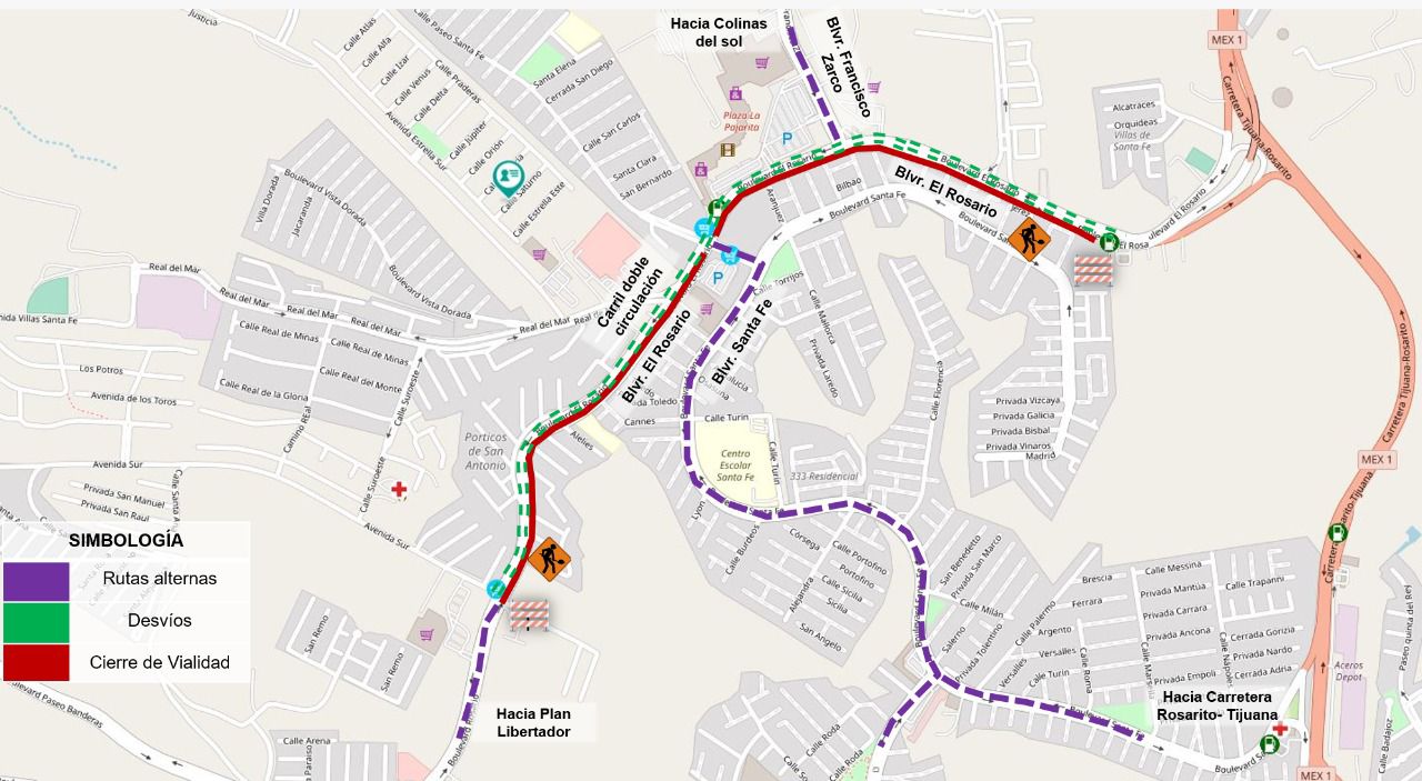 El XXlV Ayuntamiento informa el cierre parcial del Bulevar El Rosario por un lapso de tres semanas. A través de la Secretaría de Desarrollo Territorial, Urbano y Ambiental (SDTUA), se busca mejorar las condiciones viales en esta zona de la ciudad que conecta con avenidas importantes como la carretera Rosarito-Tijuana.