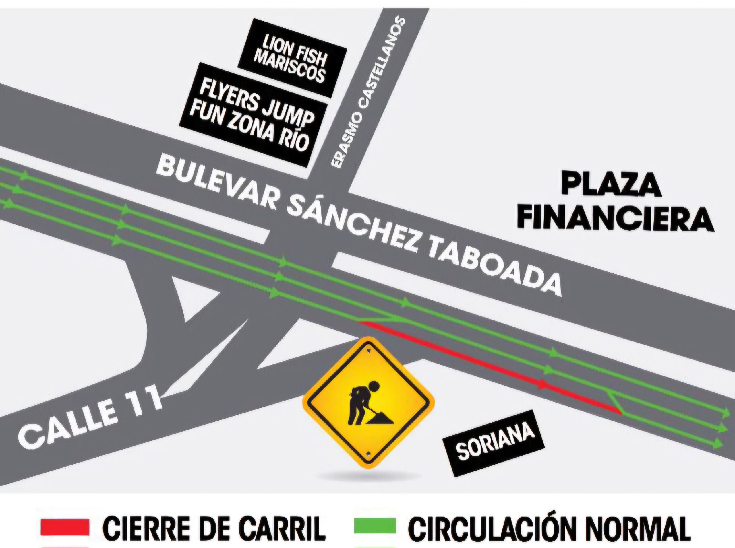 La Secretaría de Desarrollo Territorial Urbano y Ambiental (SDTUA), detalló que las labores obedecen a un hundimiento en un tramo del colector general Rodolfo Sánchez Taboada, por lo que será necesario el cierre vehicular de 20 metros del carril de extrema derecha del citado bulevar, a partir de la esquina con calle 11.