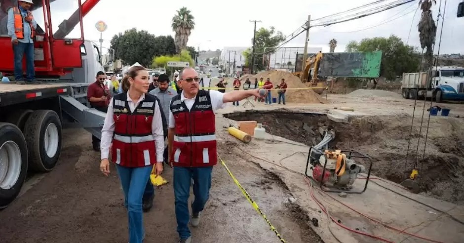 Derivado de una fuga que provocó la fractura de la tubería del acueducto Florido–Aguaje, a la altura del bulevar Díaz Ordaz, la gobernadora de Baja California, Marina del Pilar Avila Olmeda, supervisó los trabajos de reparación que se realizan para restablecer el servicio en diversas colonias de Tijuana.