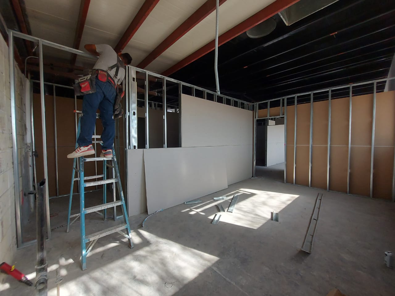 También se ejecutan trabajos en muros, recubrimientos y acabados, así como la instalación de líneas hidrosanitarias, sistema de aire acondicionado y sistema contra incendios, además del sistema de alarma, voz y datos.