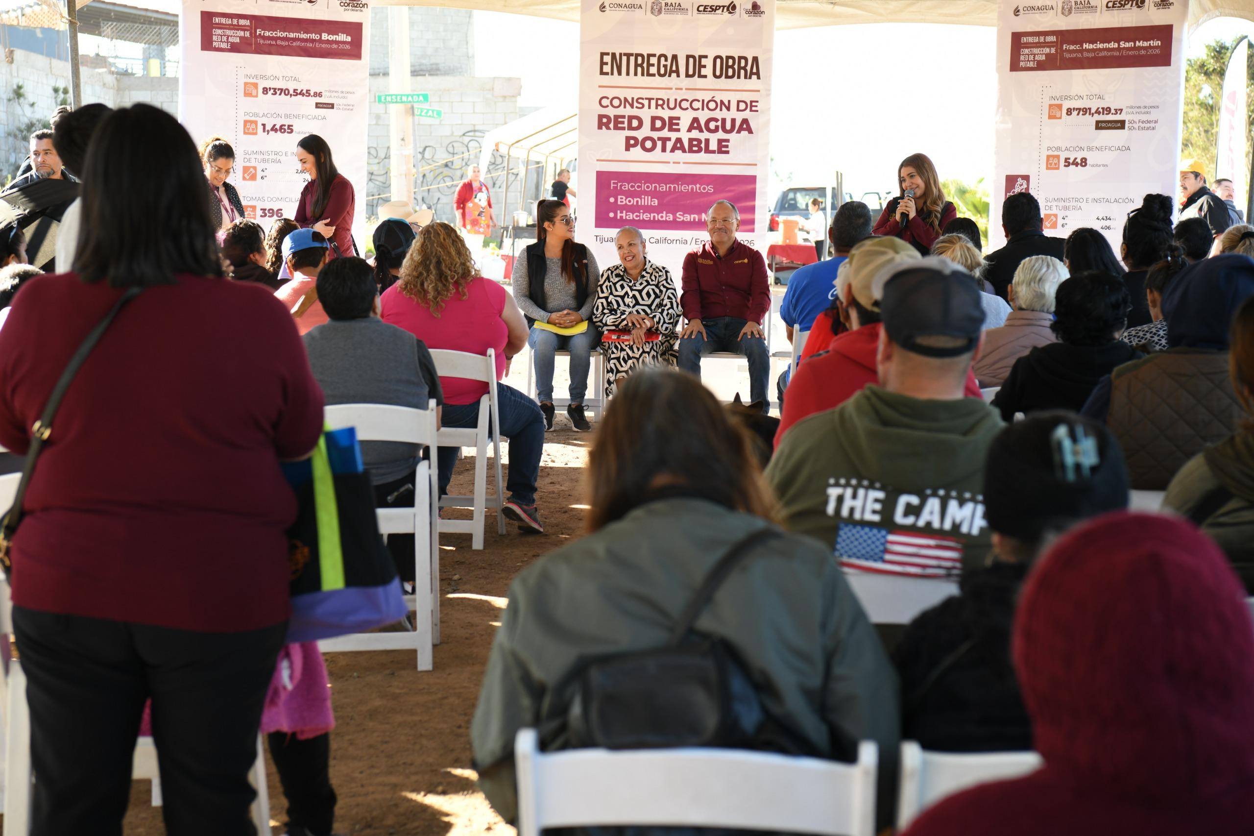 La Comisión Estatal de Servicios Públicos de Tijuana (CESPT) realizó la entrega formal de la obra de la red de agua potable en los fraccionamientos Hacienda San Martín y Bonilla, beneficiando de manera directa a más de 2 mil habitantes, con una inversión de 17 millones 161 mil 965 pesos.